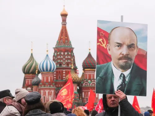 Conduşi de liderul Partidului Comunist, Ghenadi Ziuganov, un mic grup de oameni, unii purtând drapele roşii, au mărşăluit către mausoleul din granit în interiorul căruia se află corpul îmbălsămat al lui Lenin.