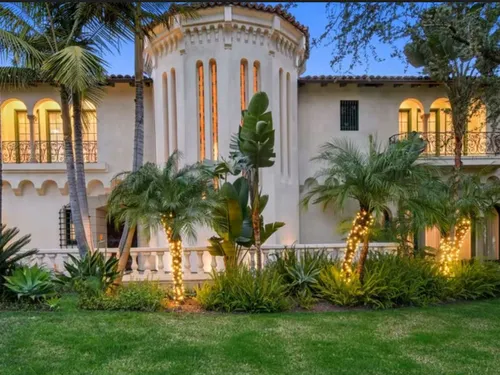 Reședința, construită în 1928 și foarte bine întreținută, are o zidărie compozită, o fațadă superbă și un turn ce amintește de un castel, șapte dormitoare și șapte băi și se află pe mai mult de o jumătate de acru de teren amenajat, asemănător unui parc, în zona râvnită West End din Beverly Hills.