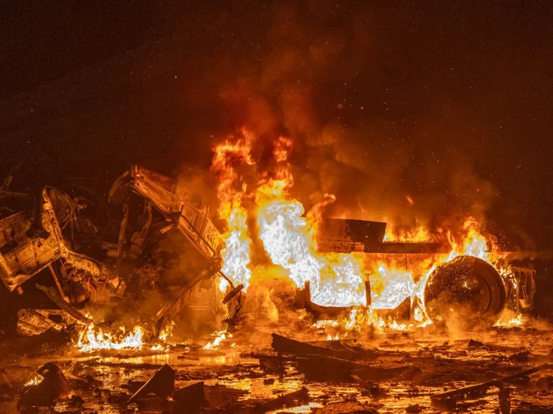 Un convoi de camioane rusești, care transporta o parte din infanteria rusească în sudul Ucrainei, a fost distrus în apropiere de Gulyaypol, după o operațiune a forțelor ucrainene cu drone. Militarii ruși, care au scăpat cu viață din atac au abandonat vehiculele în flăcări.