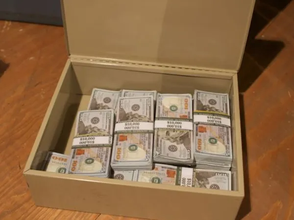 El găsit o cutie de carton cu 33.000 de dolari, precum și plicuri care conțineau 155.000 de euro.