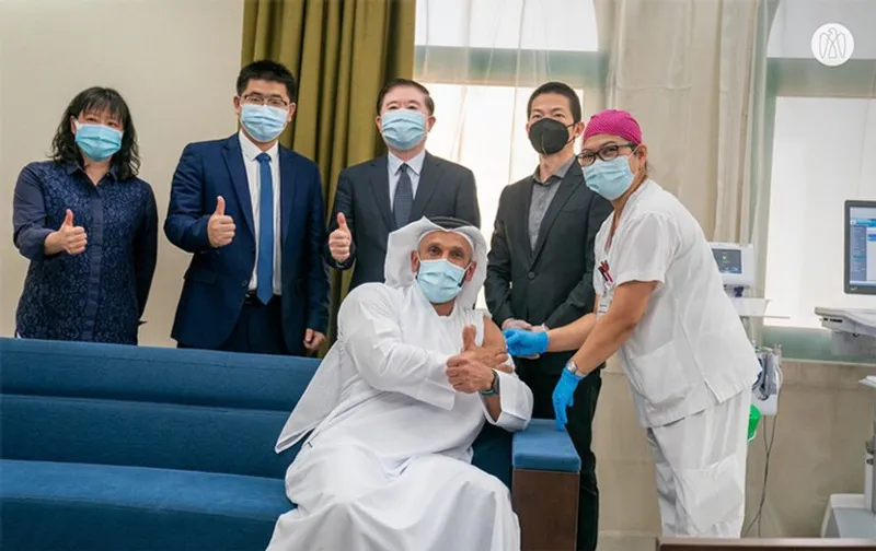 Șeicul Abdullah bin Mohammed Al Hamed, președintele Departamentului de Sănătate din Abu Dhabi, este primul voluntar din Faza a III-a căruia i s-a administrat vaccinul dezvoltat de Sinopharm CNBG împreună cu firma G42 din Abu Dhabi, la 16 iulie.