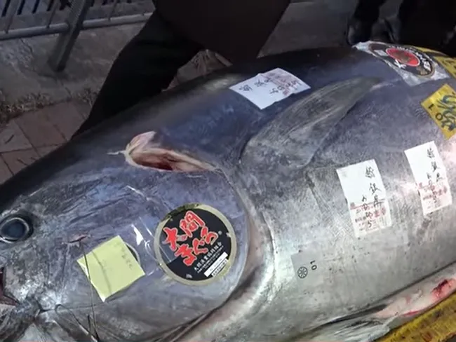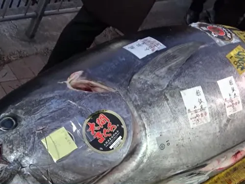 Un ton roşu imens, de 212 kilograme, s-a vândut în cadrul unei licitaţii tradiţionale de Anul Nou, În Japonia, desfăşurată la Tokyo. Suma adjudecată a fost de 36 de milioane de yeni (adică de 257.000 de euro). Preţul e aproape dublu, faţă de anul trecut.