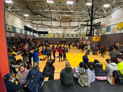300-400 de persoane s-au adăpostit în gimnaziul școlii King Cove în timpul avertismentului de tsunami.