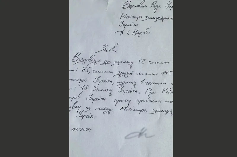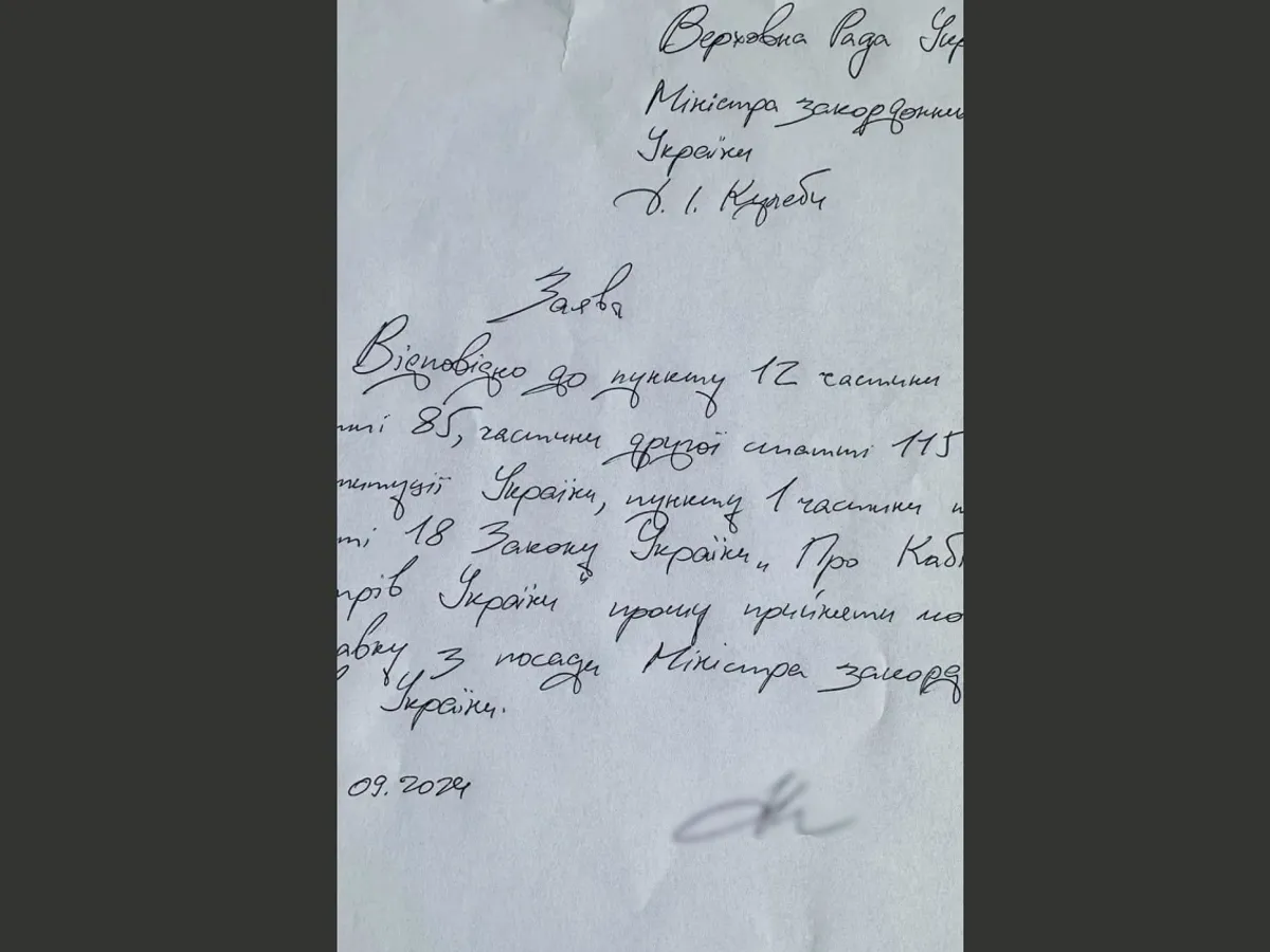 Stefanciuk a anunțat pe Facebook că Rada Supremă (parlamentul ucrainean) a primit oficial cererea de demisie a lui Kuleba.