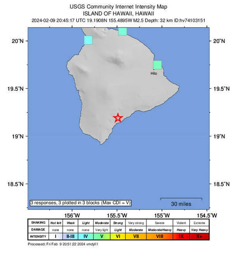 Cutremurul cu magnitudinea de 5,7 grade pe scara Richter s-a produs în apropiere de Pahala, pe insula Hawaii, potrivit USGS.