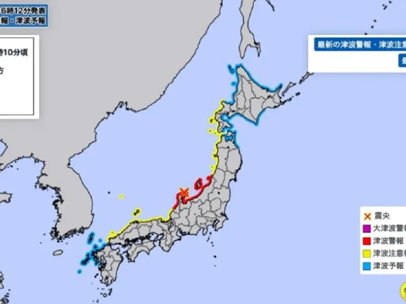 Agenția de Meteorologie din Japonia a emis o avertizare de tsunami de-a lungul regiunilor de coastă din prefecturile Ishikawa, Niigata și Toyama.
