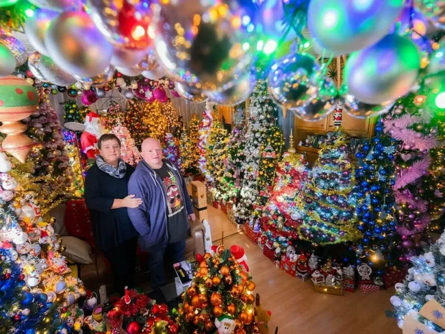 Deși cei doi dețineau deja recordul, după ce în 2021 au instalat în casă 444 de brazi artificiali, au decis să împodobească un număr și mai mare de brazi.