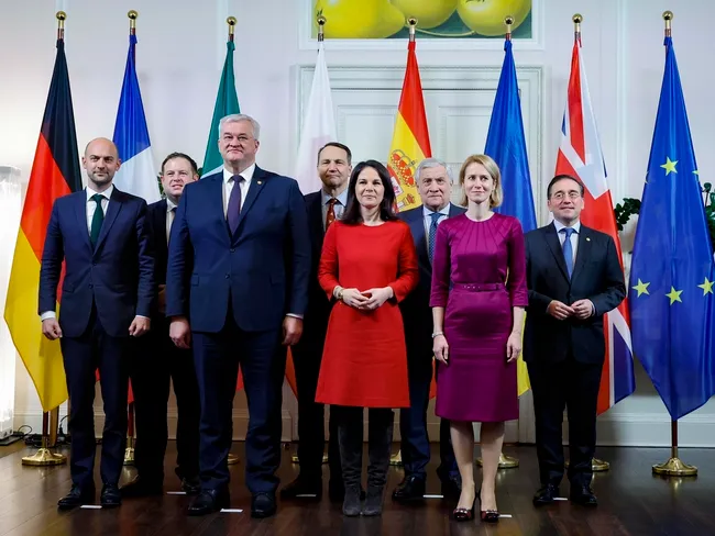 Şefii diplomaţiilor Franţei, Germaniei, Italiei, Poloniei, Spaniei şi Regatului Unit au discutat în capitala germană la o reuniune la care a participat de asemenea noua reprezentantă pentru politică externă a Uniunii Europene, Kaja Kallas.