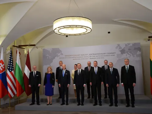 "Acum un an, Rusia a devastat pacea şi securitatea în Europa prin încercarea de a subjuga Ucraina prin forţă. Acţiunile Kremlinului au dus la o degradare drastică a mediului de securitate în zona euroatlantică, subminând grav securitatea partenerilor noştri. Rusia este cea mai importantă şi directă ameninţare pentru securitatea Aliată. Ca răspuns la războiul sângeros de agresiune al Rusiei, aliaţii NATO au reacţionat decisiv într-o manieră unitară şi responsabilă. Pentru a-şi proteja cetăţenii şi teritoriul, aliaţii sunt angajaţi să implementeze noul punct de referinţă pentru postura de descurajare şi apărare a NATO şi să crească nivelul prezenţei militare în ţările noastre", se arată în declaraţia adoptată de şefii de stat şi de guvern ai Bulgariei, Cehiei, Estoniei, Letoniei, Lituaniei, Poloniei, României, Slovaciei şi Ungariei.