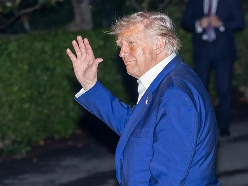 Donald Trump arată pumnul către presă, când coboară din Air Force One - Foto: Profimedia Images