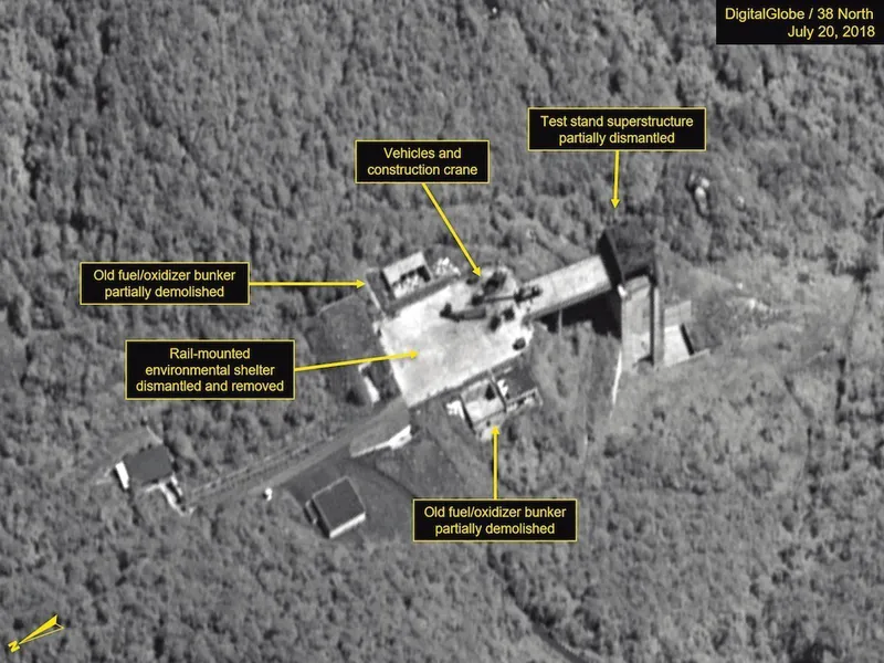 Pe 24 iulie, același site specializat 38North.org a prezentat o serie de imagini din satelit, obţinute de societatea Digital Globe și datate 20 şi 22 iulie, cu baza de lansare de rachete de la Sohae. Fotografiile relevau că o instalaţie montată pe şine, pe care sunt asamblate rachetele înainte de a fi lansate, a început să fie dezmembrată. Mai mult, un banc de testare pentru reactoarele de rachete a început, de asemenea, să fie demontat.