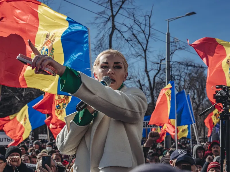 Marina Tauber a condus protestele de stradă împotriva preşedintelui ţării, Maia Sandu, care susţine integrarea rapidă în Uniunea Europeană a R. Moldova.