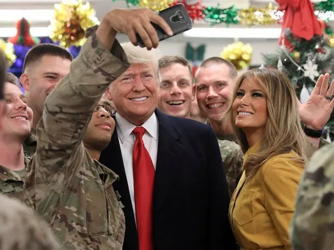 Donald Trump a fost criticat frecvent pentru că, de la preluarea mandatului de președinte, nu a efectuat nicio vizită în zone de conflict unde sunt prezente trupe americane. Până în seara de Crăciun! Atunci, purtătoarea de cuvânt a Casei Able, Sarah Sanders, a anunțat că președintele și prima doamnă au plecat spre Irak în seara de Crăciun „pentru a face o vizită trupelor noastre şi comandanţilor noştri militari ca să le mulţumească pentru angajamentul, succesul şi sacrificiul lor şi să le ureze Crăciun fericit”. Apoi au apărut fotografii publicate de Reuters care i-au arătat, alături de consilierul pentru securitate națională, John Bolton, la baza aeriană Al Asad din Irak.