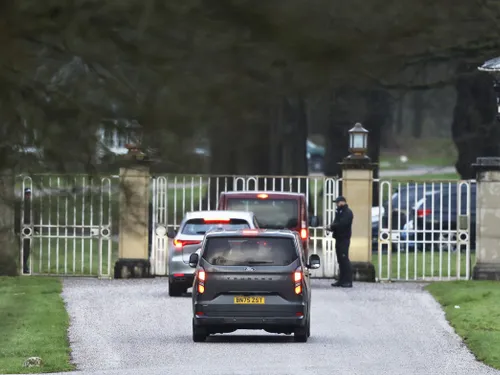 Joi dimineaţă devreme s-a aflat că şase maşini de poliţie fără însemne şi aproximativ opt ofiţeri în civil au sosit la Wood Farm, pe domeniul Sandringham din Norfolk, în estul Angliei, unde locuieşte acum Mountbatten-Windsor.