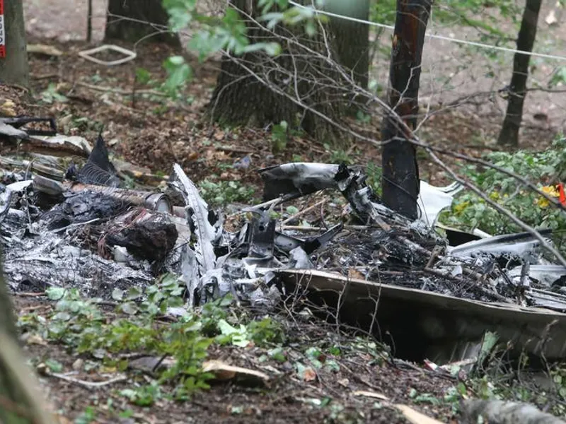 Părţi ale avionului au fost împrăştiate pe o suprafaţă de peste 1.000 de metri pătraţi ca urmare a impactului cu solul.