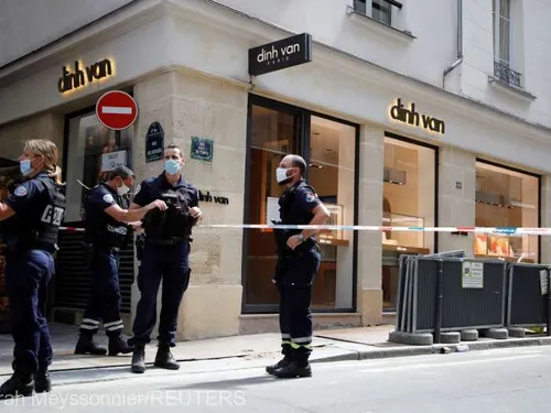 Vineri, cu puţin înainte de ora locală 12:30, doi bărbaţi înarmaţi cu un taser electric şi un spray cu gaze lacrimogene, au pătruns în magazinul de bijuterii Dinh Van, din Arondismentul IV. Ei au ridicat fără să recurgă la violenţă bijuteriile expuse şi banii din casa de marcat, după care au reuşit să fugă.