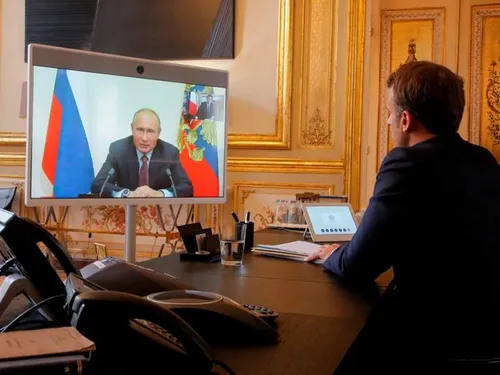 Preşedintele francez a declarat că doreşte să discute cu omologul său rus "pentru a securiza operaţiunea umanitară din Mariupol", precizând că obiectivul este de a lansa această operaţiune "în următoarele zile" şi reproşându-i Rusiei "nerespectarea dreptului umanitar internaţional".