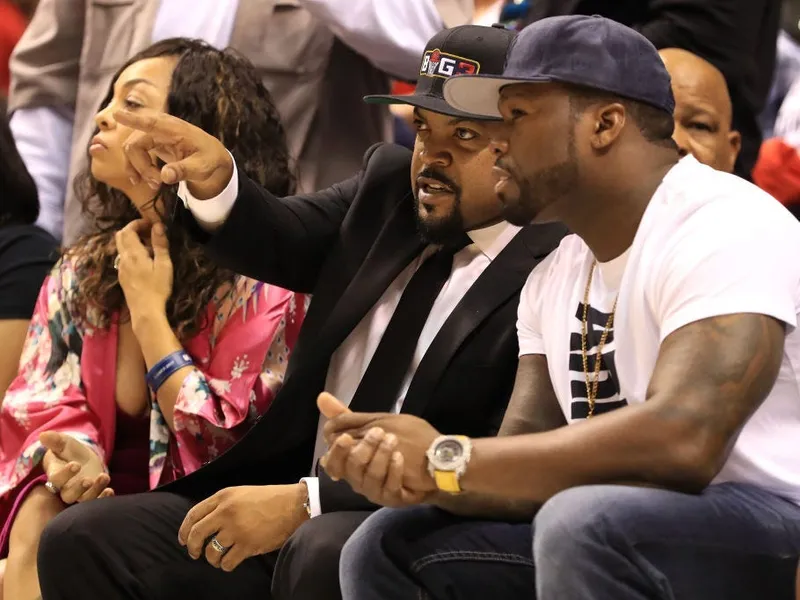 În fotografia originală, Ice Cube, al cărui nume real este O'Shea Jackson, purta o șapcă cu liga de baschet ”BIG3” și Curtis Jackson, alias 50 Cent, o șapcă cu New York Yankees.