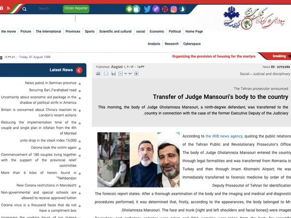 Anunțul a fost făcut de agenția de presă IRIB (Islamic Republic of Iran Braodcasting) News, potrivit căreia, din datele Parchetului din Teheran, cadavrul ar fi ajuns la Teheran din România după ce a trecut prin Turcia.
