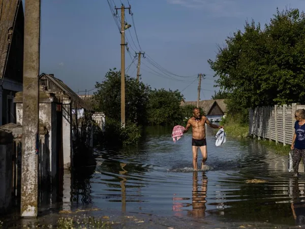 Revărsarea apelor Rezervorului Kahovka a inundat oraşele şi satele situate în aval de barajul distrus.