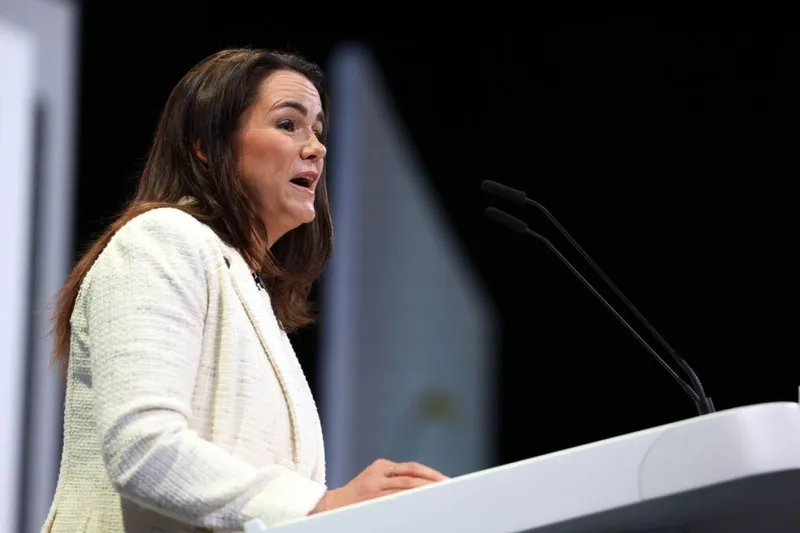 Katalin Novak, fosta preşedintă a Ungariei, vorbind la londra, la o conferinţă - Foto: Profimedia Images