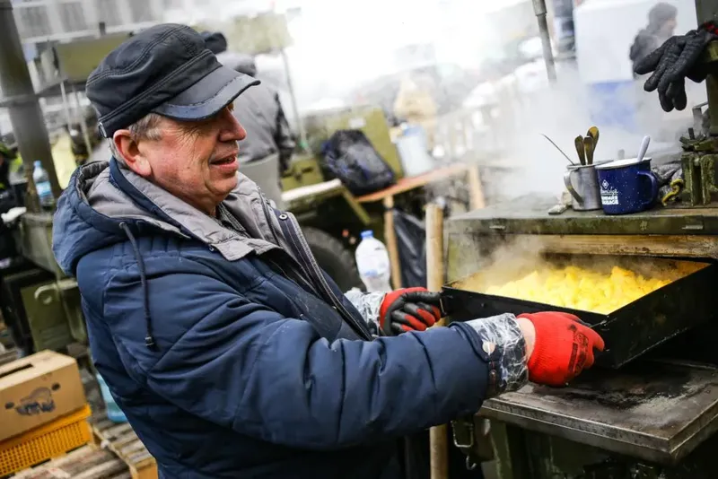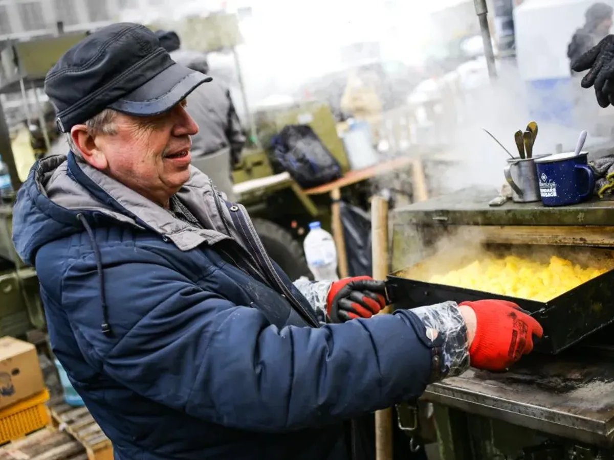 În imagini se văd oameni de toate vârstele care lucrează pentru rezistența anti-rusă.