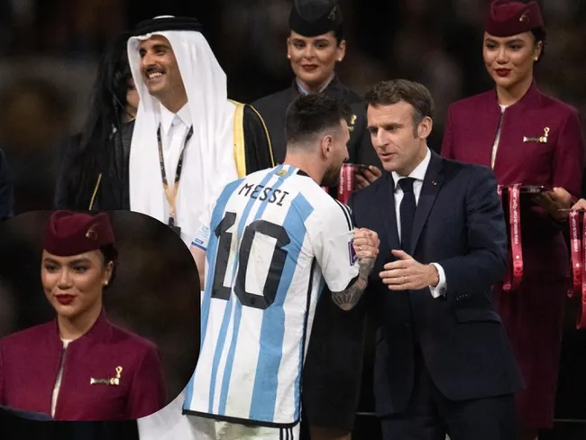 Tânăra, care lucrează ca stewardesă pentru o companie aeriană din Qatar a fost prezentă pe scena de decernare a Cupei Mondiale.