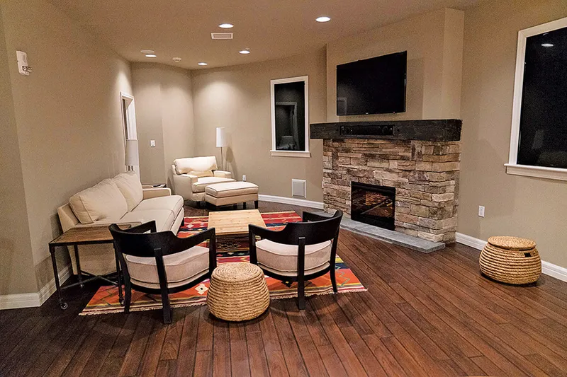 Am avut aceeași senzație ca atunci când intru într-un dormitor dintr-un lanț hotelier curat. Apartamentul avea un covor Southwestern, o sufragerie albă și confortabilă și un șemineu electric din piatră, cu un televizor cu ecran plat montat deasupra.