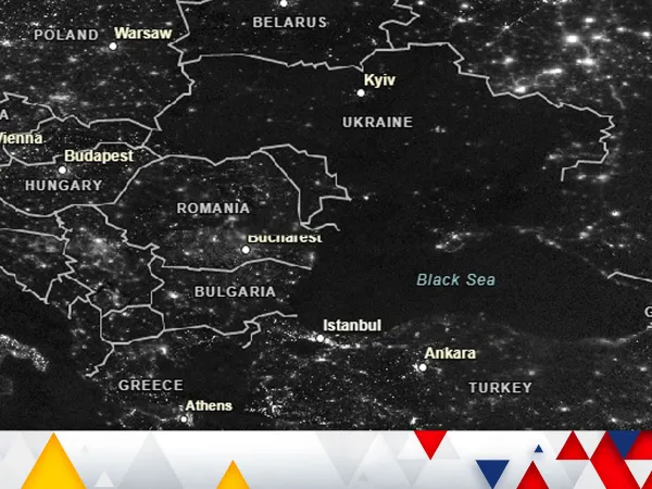 FOTO din satelit: Noaptea, războiul a transformat Ucraina într-o pată neagră pe harta Europei