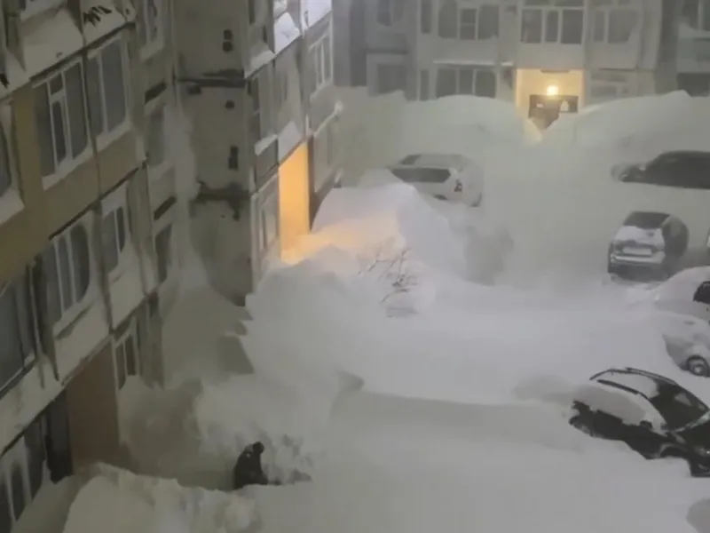 FOTO Iarnă extremă, în Orientul Îndepărtat al Rusiei. Zăpada ajunge până la etajul 2 al blocurilor