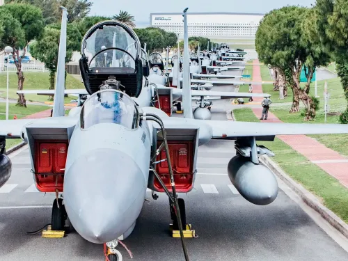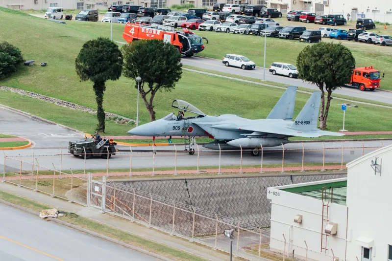 Baza aeriană Naha a Forțelor de autoapărare aeriană japoneze (JASDF) - care este situată pe coasta Mării Chinei de Est a părții sudice a insulei Okinawa, cea mai mare insulă din cadrul prefecturii japoneze Okinawa - are aproximativ 40 de F-15J. Aerodromul, care include o pistă de aterizare în largul țărmului "recifului", servește, de asemenea, ca aeroport comercial, scrie twz