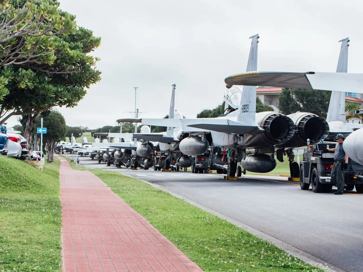 Baza a publicat recent imagini care arată câteva dintre avioanele sale F-15J înghesuite de-a lungul unui drum civil.