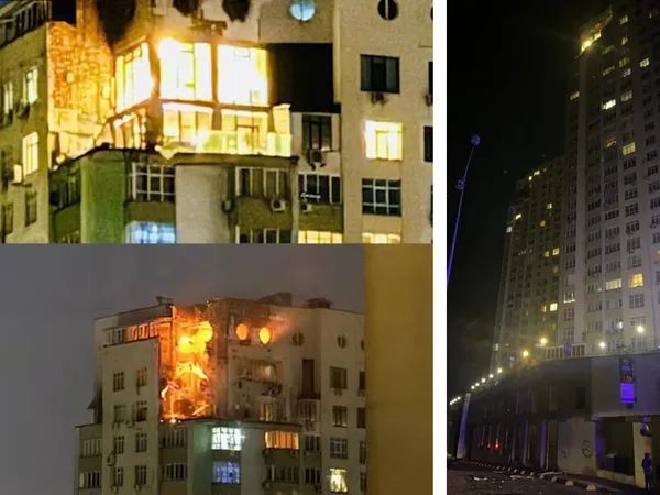 FOTO Kievul sub asediu rusesc. O dronă kamikaze a lovit un bloc de locuințe provocând un incendiu