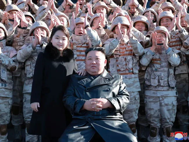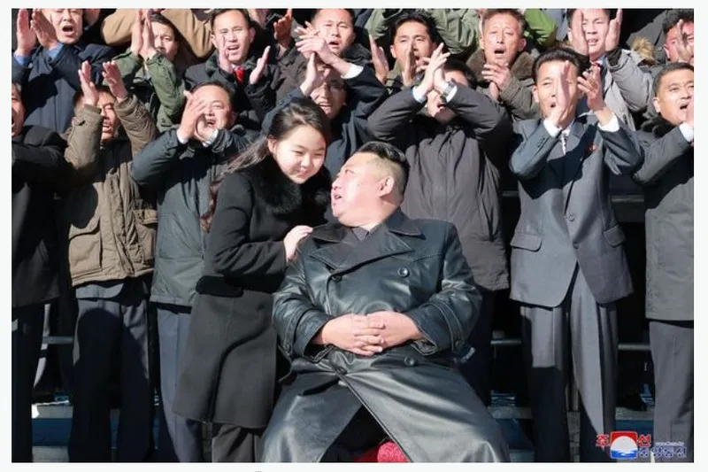 Acestea o arătau urmărind lansarea rachetei balistice intercontinentale a Coreei de Nord din ziua precedentă împreună cu părinții ei și cu oficiali mai în vârstă.