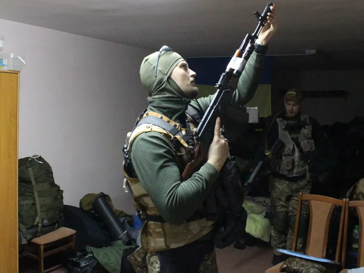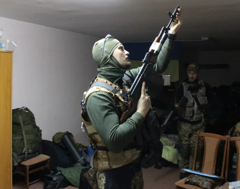 Acest loc a fost odinioară pivnița unei case unifamiliale scumpe. Acum este un adăpost spartan pentru o unitate de voluntari ucraineni care luptă cu armata rusă în oraș.