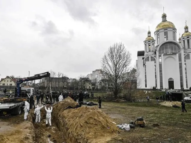 Potrivit primarului din Bucea, Anatoli Fedoruk, peste 400 de cadavre au fost descoperite în oraş după retragerea trupelor ruse.