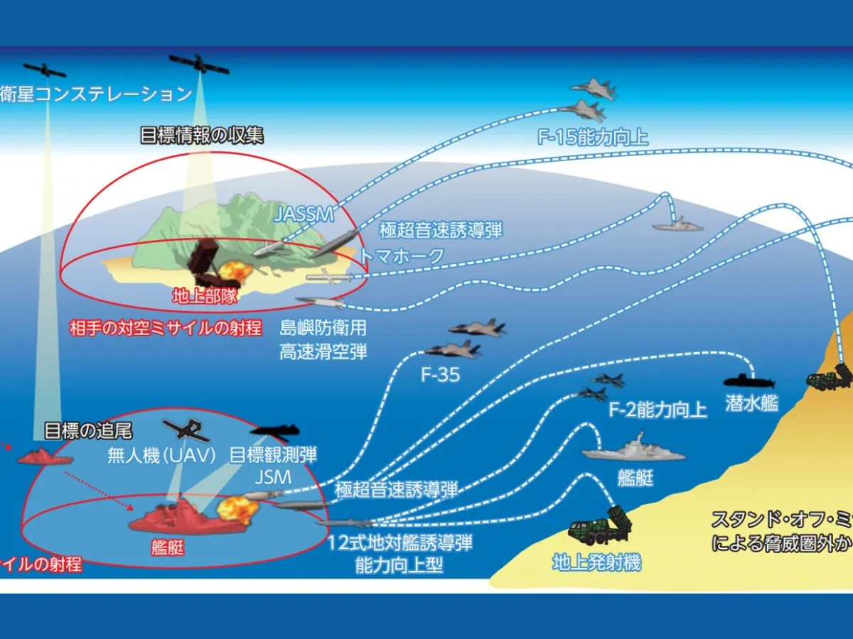 "Ne consolidăm în mod fundamental capacitățile de apărare împotriva navelor invadatoare și a forțelor de debarcare, inclusiv în regiunile insulare, prin desfășurarea rachetei îmbunătățite de tip 12 sol-navă (versiunea lansată de la sol) și prin achiziționarea de rachete Tomahawk fabricate în SUA, cu un an înainte de termen, începând cu anul fiscal 2025".