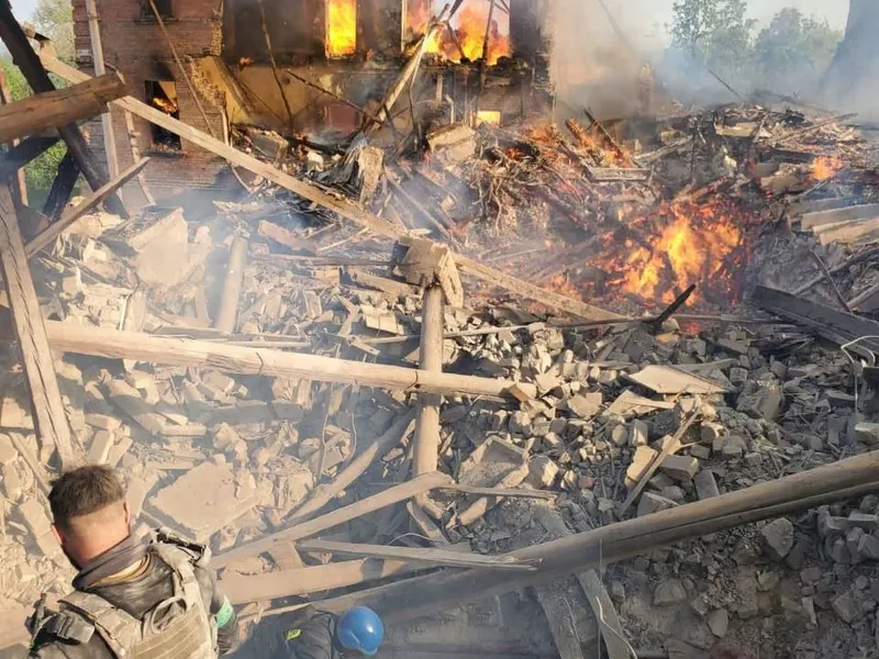 FOTO Rușii au bombardat buncărul de sub o școală de lângă Lîsîceansk în care se aflau 90 de persoane