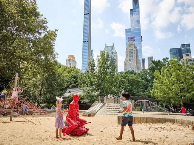 O statuie care îl înfățișează pe preşedintele rus Vladimir Putin călare pe un tanc a apărut la un loc de joacă din Central Park, în New York. Sculptura roşie a fost realizată de artistul francez James Colomina.