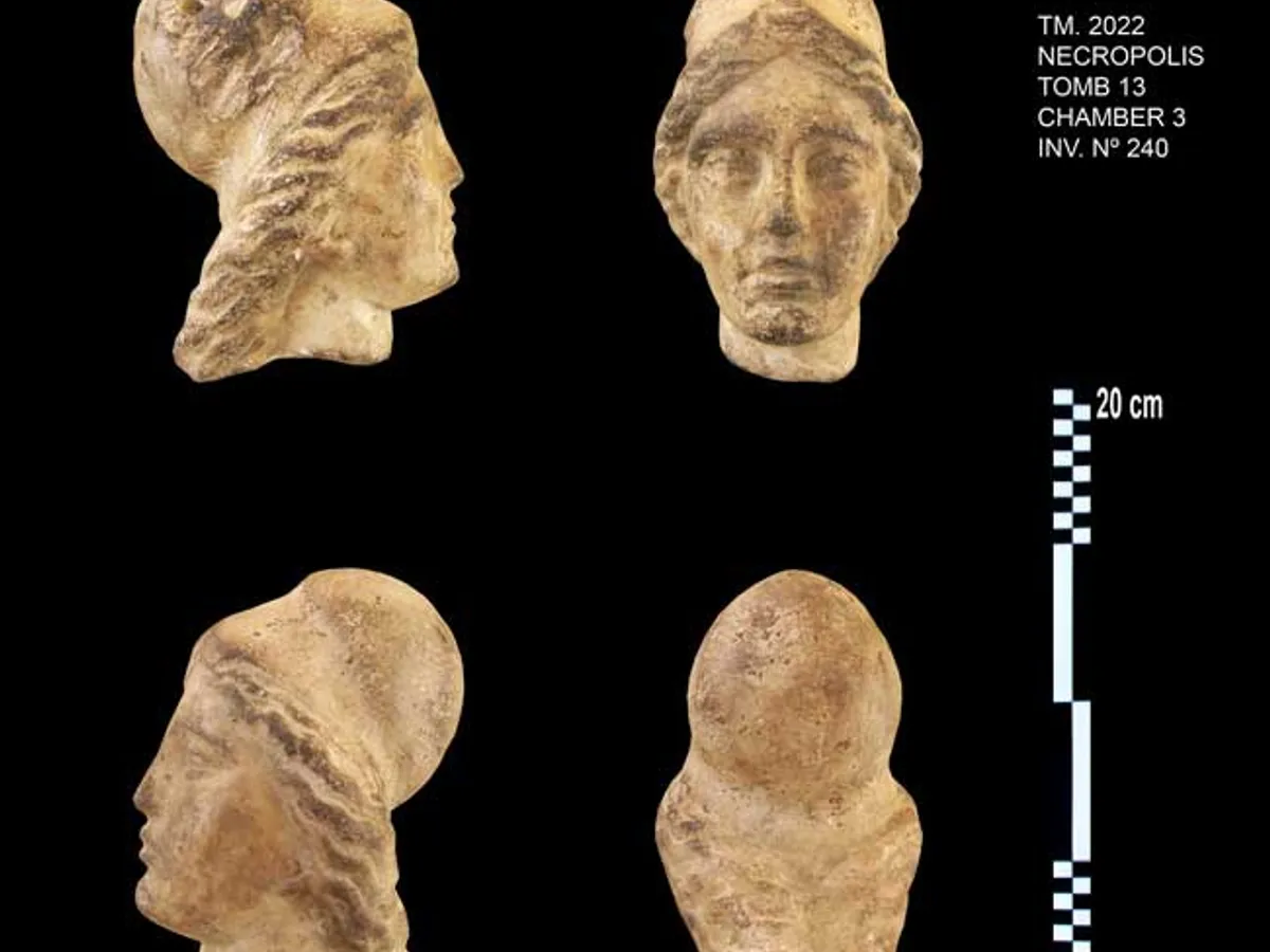 "Lângă templu, arheologii au găsit două capete de alabastru, unul reprezentând o persoană din perioada ptolemeică, din 305 până în 30 î.e.n., iar celălalt reprezentând un sfinx", se precizează în comunicat.