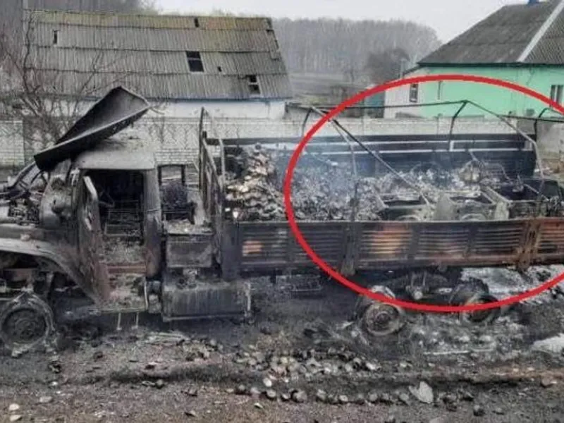 Ministerul ucrainean al Apărării a publicat o fotografie cu un camion militar rusesc distrus, încărcat cu mai multe mașini de spălat care ar fi fost furate de militarii ruși din Ucraina.