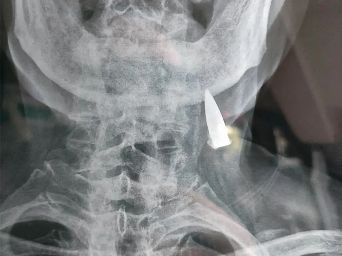 "Am rămas fără cuvinte când o radiografie a arătat acest glonț în gâtul meu", a spus el.