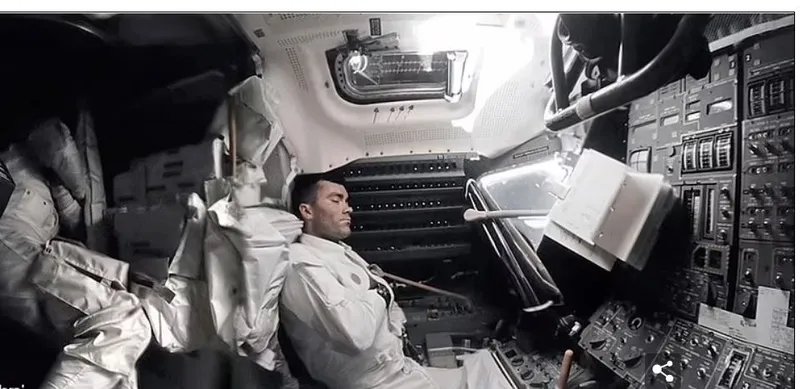 Fred Haise încearcă să doarmă în modulul rece al navei Apollo 13 în 1970, una dintre cele mai emoționante fotografii.