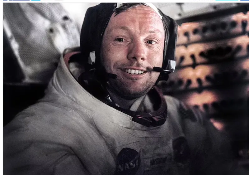 Neil Armstrong este surprins de Buzz Aldrin la câteva momente după istorica plimbare în spațiu din 1969, dezvăluind emoția de pe chipul astronautului. Se pare că are o lacrimă în ochi.
