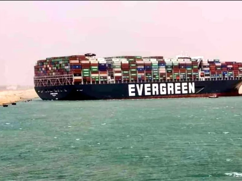 FOTO & VIDEO Peste 150 de nave blocate după ce un portcontainer a eşuat în Canalul Suez