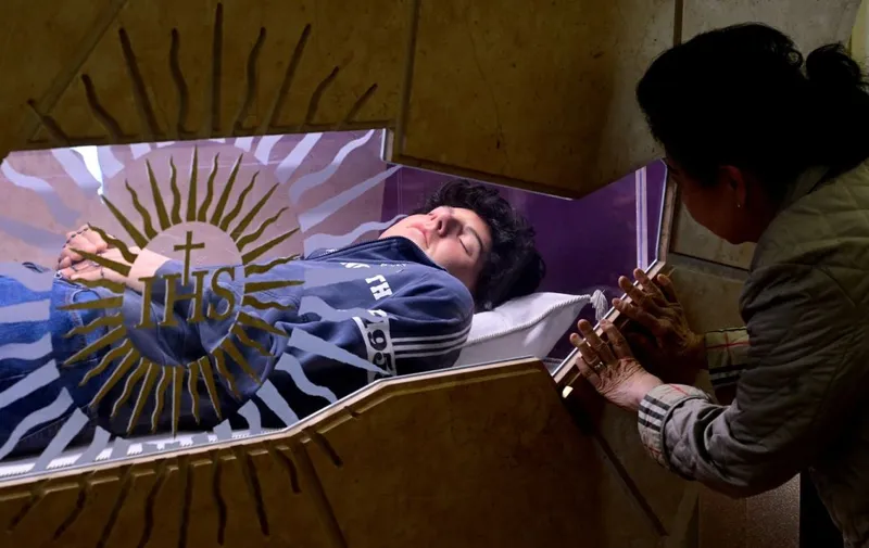 O femeie se roagă în faţa sicriuljui Binecuvîntatului Carlo Acutis - Foto: Profimedia Images