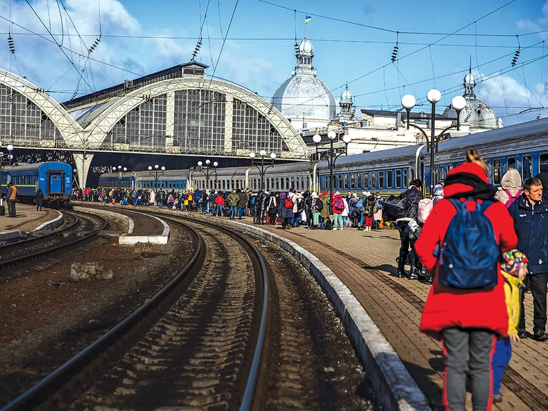 Natalia Pivniuk, care a plecat din Lvov în Polonia, a descris mulțimi de oameni care se împingeau pentru a urca la bordul trenurilor din Ucraina. Ea a povestit AP că experiența a fost „înfricoșătoare și periculoasă din punct de vedere fizic și mintal“. „Oamenii sunt traumatizați“.