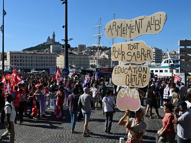 Într-o declarație comună publicată la sfârșitul lunii august, sindicatele au denunțat măsurile bugetare ale guvernului drept „brutalități fără precedent”, acuzându-l că îi pune din nou pe „muncitori, șomeri, pensionari și bolnavi” să plătească prețul.