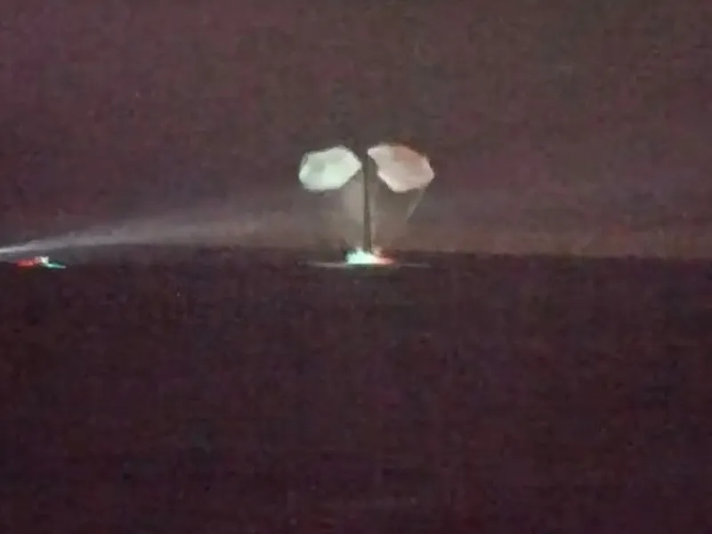 Capsula navei spațiale SpaceX Dragon Endurance, încetinită de parașute, se apropie de suprafața apelor Golfului Mexic, în largul orașului Tampa din SUA - Foto: Profimedia Images
