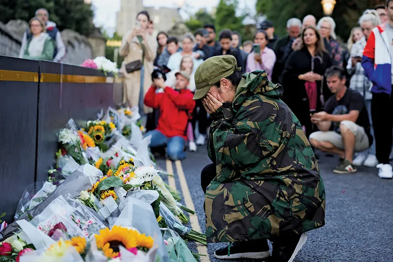 MOȘTENIRE Oameni plângând au lăsat flori în afara Castelului Windsor, după moartea Reginei pe 8 septembrie.